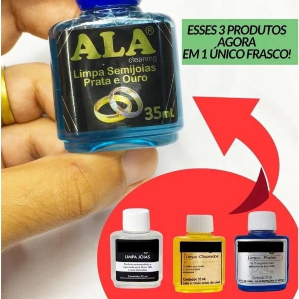 ALA cleaning 3x1 é um produto para limpeza de Jóias, Semijoias, Prata, Latão, Cobre e chapeados em geral.